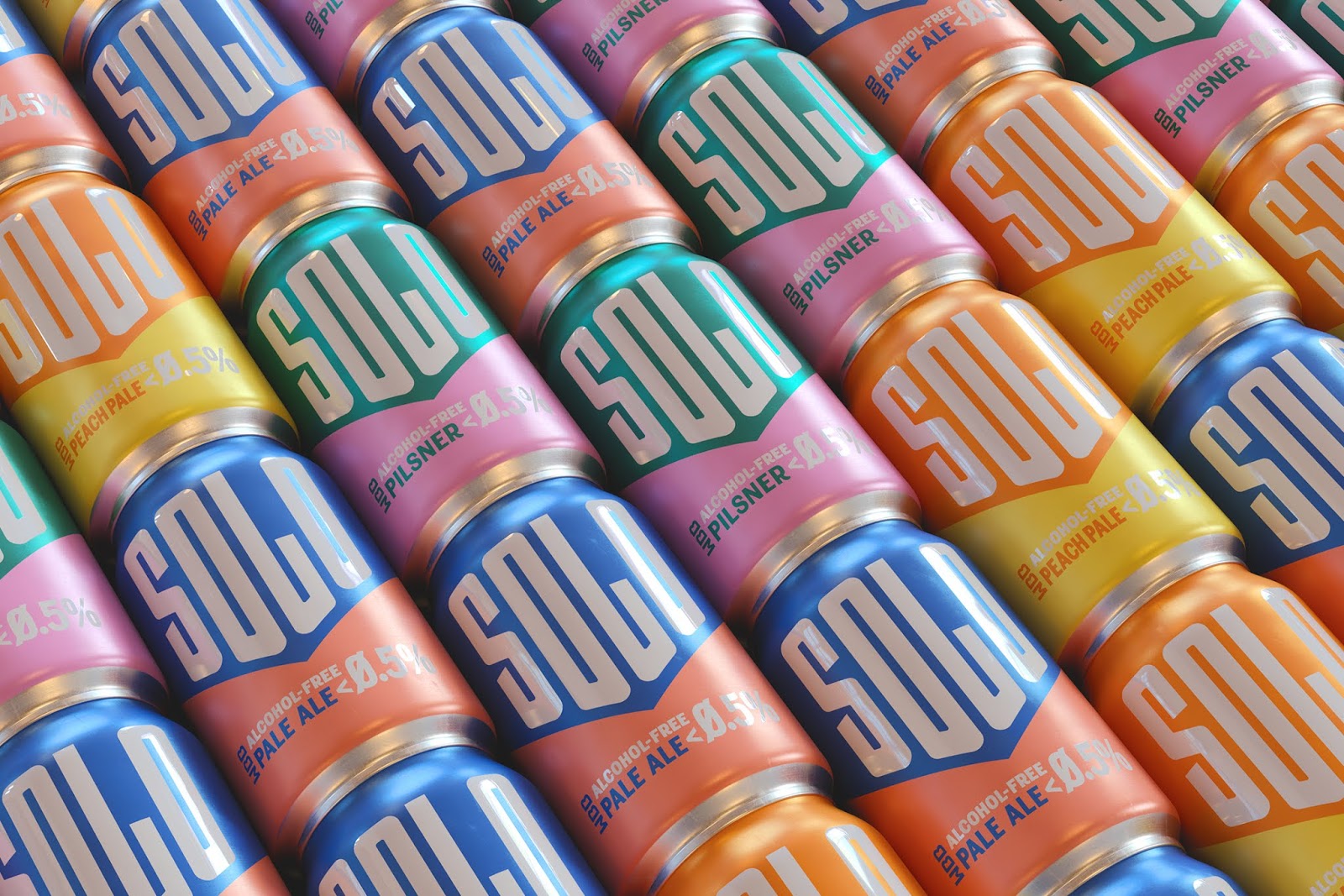 Solo無酒精啤酒包裝,三個(gè)關(guān)鍵詞運(yùn)動(dòng)感,下箭頭,對(duì)比色。抓住了人們心智厭惡混亂的特點(diǎn),簡(jiǎn)潔明了的描述了產(chǎn)品賣點(diǎn)無酒精淡啤,通過向下的箭頭不斷暗示消費(fèi)者酒精度數(shù)已經(jīng)下降到零,對(duì)比色區(qū)分信息,增強(qiáng)識(shí)別性。