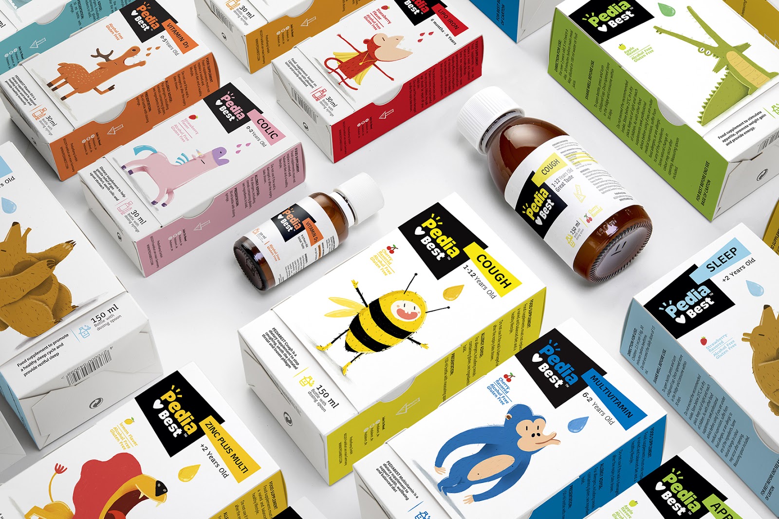 給嬰幼兒喂藥絕對是媽媽們頭疼的一件事情,通常的方法一般是:“讓我看看你的牙齒”,“張開你的嘴!飛機要來了!”,但是往往并不奏效。DEEEZ.CO設計的包裝盒可以講故事,根據每款產品的適應癥,動物們急切地張著嘴要喝糖水。包裝講述有趣的故事。使孩子產生一種渴望和好奇的感覺,并在服藥時使他們愉悅。